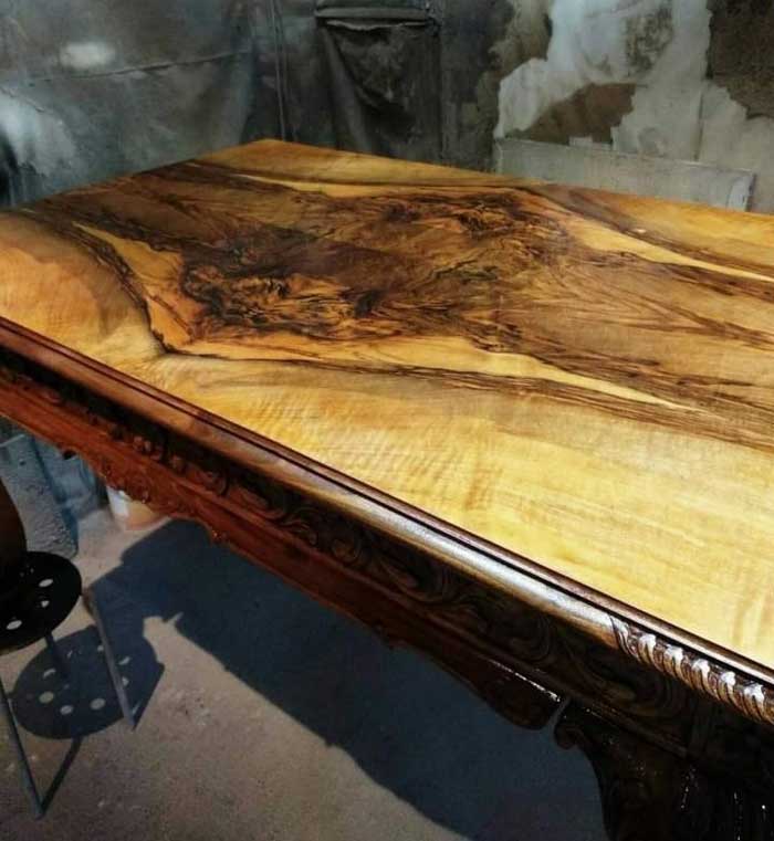 Με ήπιους και χειρωνακτικούς τρόπους καθαρίζουμε τις αντίκες από τα προηγούμενα βερνίκια, με σεβασμό στα παλαιά ξύλα και με την μικρότερη δυνατή παρέμβαση.